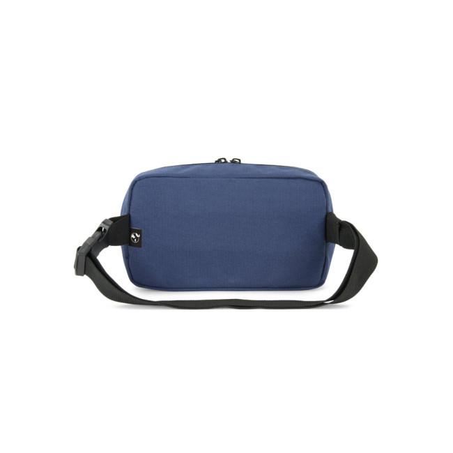 Waist bag in 600D recycled polyester and lining in 210D recycled polyester. It has 1 main compartment and 1 front pocket. 220 x 130 x 70 mm