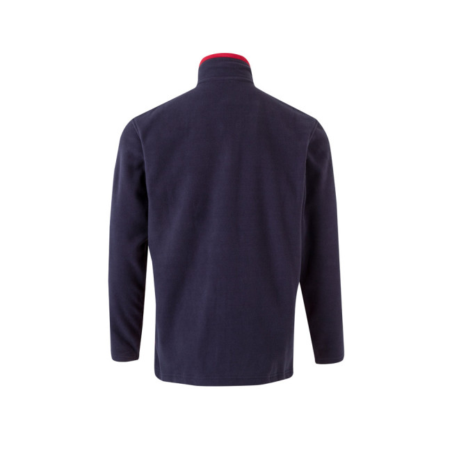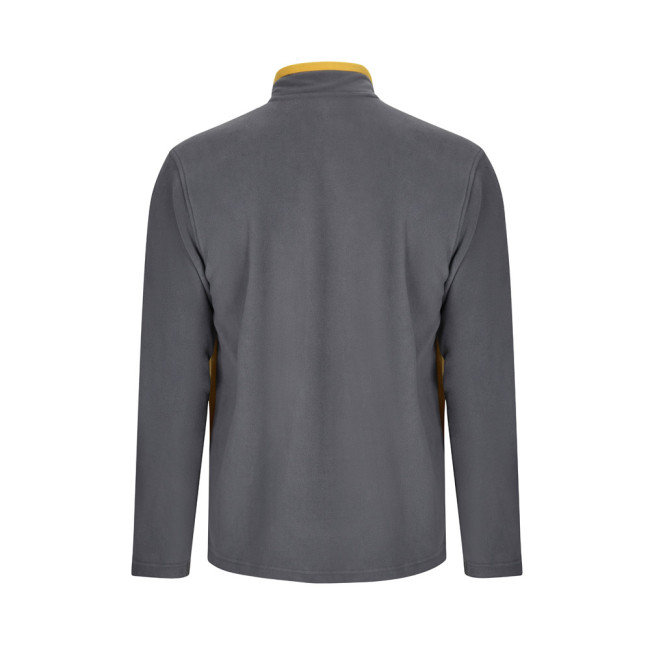 Two-tone fleece jacket (220g/m²) in polyester (100%). Microfiber fabric. With central zip, contrasting color on the sides, inside of the collar and zips. With five pockets (3 exterior pockets, with zip and two interior pockets). Size: XS, S, M, L, XL, 2XL, 3XL